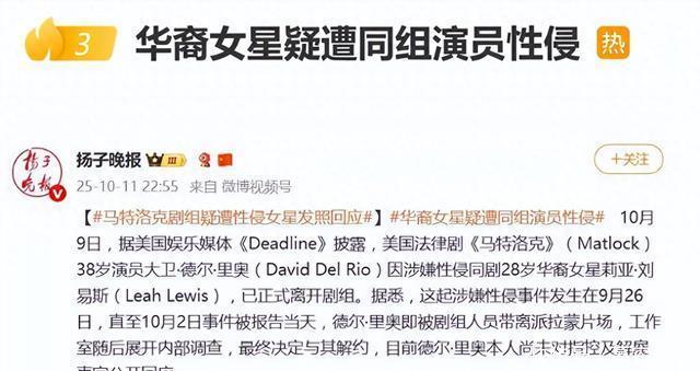 华裔女星疑遭性侵 10月2日,美国娱乐媒体传出最新消息,正在拍摄的法律剧《马特洛克》的男演员大卫·德尔·里奥涉嫌性侵同组女演员莉亚·刘易斯。 大卫·德尔·里奥今年38岁,莉亚·刘易斯今年28岁,此事传出之后立刻引起了大家的广泛关注。