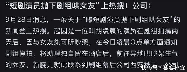 9月28日,一条关于短剧男演员胡凌宸的新闻登上热搜,原因是他在剧组拍摄时竟然单方面通知剧组停拍,一个人离开了剧组。 胡凌宸离开的时候,剧组刚刚开机两天,并且他通知停拍的时间是凌晨3点,助理也被一个人留在了酒店。